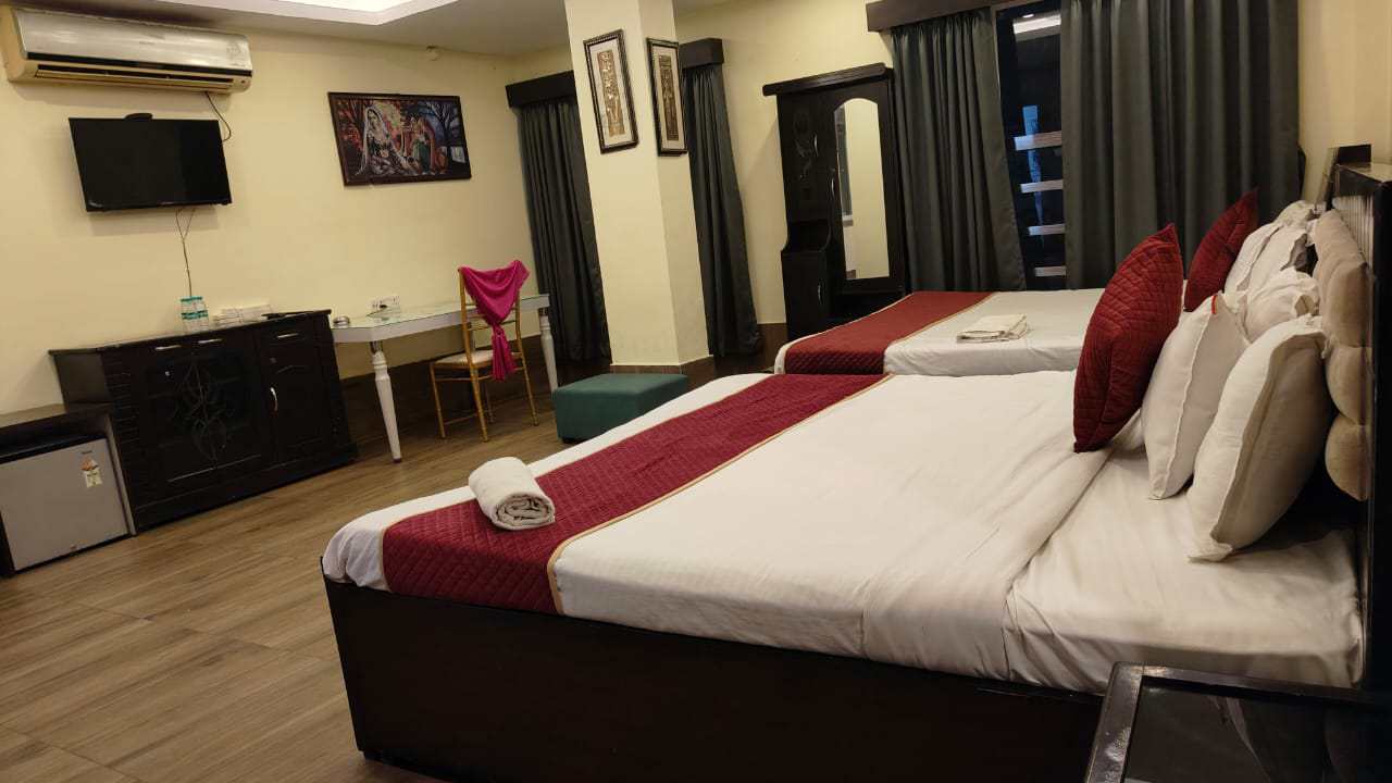 The Family Room at Hotel Eco Park is designed to offer spacious comfort and convenience for guests traveling with loved ones. With ample space, cozy bedding, and tasteful interiors, it provides a welcoming atmosphere where families can relax and enjoy quality time together. Equipped with modern amenities like air conditioning, a flat-screen TV, Wi-Fi, and a private bathroom, the room ensures a comfortable and hassle-free stay for every member of the family.